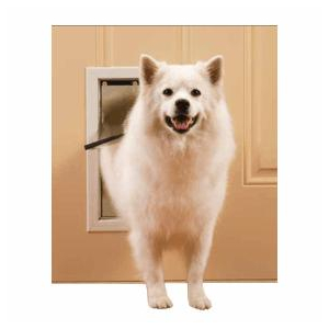 Doors Aluminum Pet Door Solid aluminum construction with locking panel Soft, transparent single flap for weather tight seal Easy do-it-yourself installation Fits doors from 3/8" to 2" thick Dimensions - 12 3/4" x 17 1/2" Flap Openin... Read more