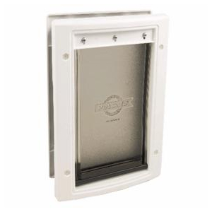 Doors Plastic Pet Door Durable plastic frame with closing panel for security Great for storm doors Great for pets up to 15lbs White Dimensions - 7 5/8" x 11 1/8" Flap Opening - 5 1/8" x 7 5/8"