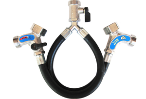 Adjustable temperature setting. One time installation. Heat & Pressure rated. Solid chrome plated copper components insure long life and durability. Tucks neatly behind washer when not in use. Quick access to warm water with good pressure.