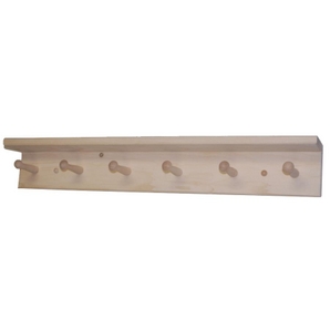 Pine Peg Rack Shelf Unfinished pine peg rack with a 3-1/2" shelf on top Great for any room to hang clothing, with a shelf on top Ready to paint, stain or leave as natural pine Easy to hang and is very strong Some assembly required 28" L... Read more
