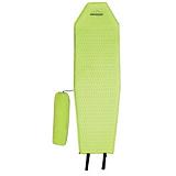 Deluxe self inflating mat Silk screen on polyester stuff sac Two Velcro® rollup straps Anti-slip surface on one side Includes convenient carry bag Ultra-light Mummy-shaped 72 x 20 x 1.2"