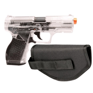 Accessories P9 Pistol Cock and shoot spring powered pistol Shoots up to 275 FPS Includes 15 rd clip, high quality cordura holster, and trial package of .12 gr airsoft BB's