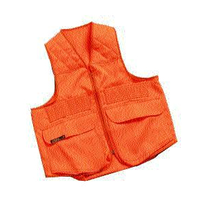 Accessories Hunting Vest Unlined vest Cotton or polyester or poly/cotton blend shell 2 front bellow pockets with flaps Dual shooting pads Nylon lined waterproof game pocket on the back and a nylon zipper Blaze orange Image not exact (n... Read more