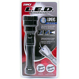 Rechargeable DEL flashlight. 200 lumens. 2-h runtime. 300-ft. beam. AC/DC charger. Aluminum body.