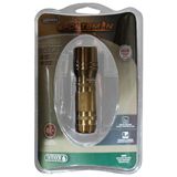 Sportsman flashlight. Machined aluminum, bright 0.5 W high-powered LED, run time 45 h. Water-resistant. 3 AAA alkaline batteries included. Lifetime warranty.