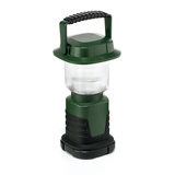 Lantern powered by 3 AA batteries (included) that has a running time of 75 h. LED bulb, 1 WT, 70 lumens and 3-light modes. Water and shock resistant. Lifetime warranty.