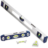 Set of 4 levels includes: 24-in. aluminium project level, plastic line level, composite torpedo level and cross level. Lightweight aluminum frame with 360° acrylic vials in shock-resistant holders. Special hook design holds the line for lon... Read more
