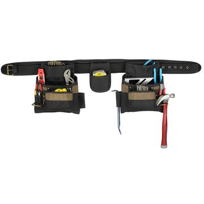 Professional Carpenter Apron made of 600D polyester fabric and 1680D ballistic nylon binding 6 main nail and tool pockets 11 smaller pockets holder fits tape measure up to 30' 3" wide padded cpmfort belt 2" wide web belt with steel rolle... Read more