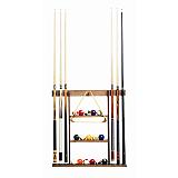 Deluxe hardwood billiard wall rack Holds six cues, one set of billiard balls and a triangle Easy to assemble Wall mounted Mounting hardware included