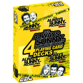 It's Always Sunny In Philadelphia Playing Cards, 4-Pack Play your favorite card games with The Gang at your fingertips. The playing cards feature Episode Summaries and Quotes from seasons one through five. Each deck includes 54 cards. Deck 1... Read more