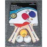 2-player table tennis set includes two paddles and three 1 star balls Concave style laminated wood handles Pips-out rubber facings 5-ply handles Performance rating of 57